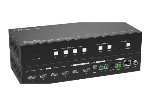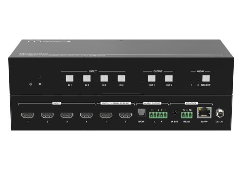 - 4x2 HDMI 2.0 Matrix Switcher with 4 HDMI inputs and 2 HDMI outputs