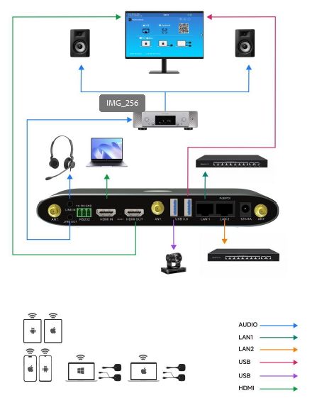- Support Android, MAC, and Windows apps for wireless presentation