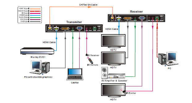 | Output | 1 x HDBT | 1× HDMI 1× DVI; 1× VGA; 1× AUDIO |