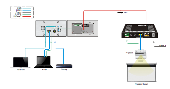 - Supports RS232 pass-through with HDBaseT connection and local control.