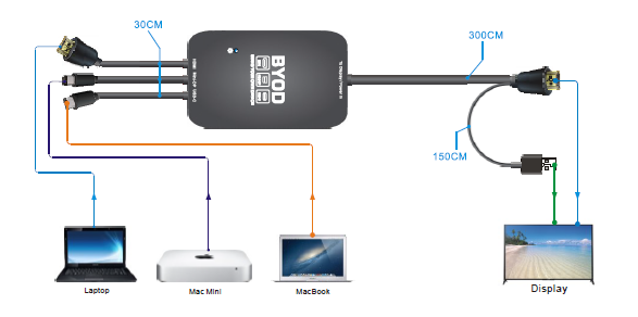 MP-BYOD is an HDMI 2.0 3x1 Multi-format Presentation Switcher converting AV signal from HDMI, Mini DP and USB-C inputs to HDMI output. The MP-BYOD is a green low energy consumption product which has a various application in different places, such as classroom, small meeting room, lecture hall, and etc.