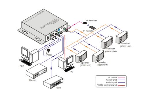 - Controlled via front panel buttons, RS-232, IR, and GUI