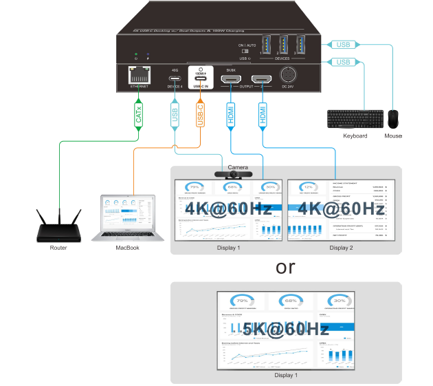 - Supports single 5K@60Hz (5120x2880) UHD or dual 4K@60Hz display outputs