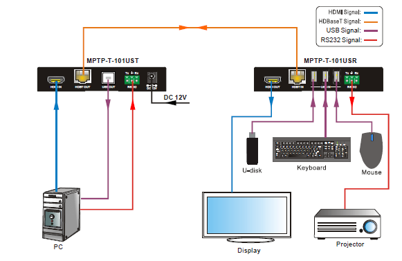 MPTP-T-101US is a 4K HDMI Extender set developed with the latest HDBaseT™ 2.0 technology to extend uncompressed HDMI video, audio, USB 2.0, control signals and PoC over a single CAT5e/6 cable. The unidirectional PoC compliant extender comes with only one power supply, which means that the Receiver can be powered via Transmitter to save installers time and added cost to installing a power outlet. Ideally designed for smart displays and KVM solutions fitting digital signage markets.